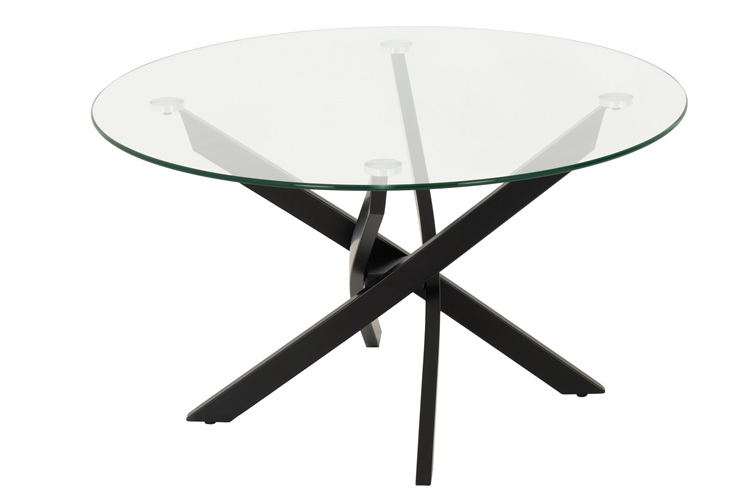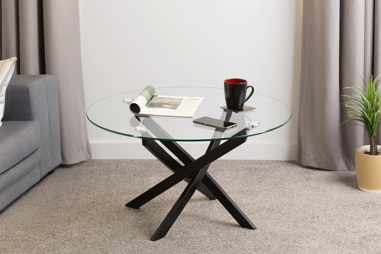 Sleek and sophisticated, this contemporary coffee table features a crystal-clear round glass top that adds an airy elegance to any living space. Supported by a sturdy black metal base with crossed legs, the geometric design blends minimalist style with structural strength. Perfect for showcasing books, decor, or your morning coffee, this table effortlessly complements modern, industrial, or transitional interiors. Ideal for compact spaces yet striking enough to be a centerpiece.