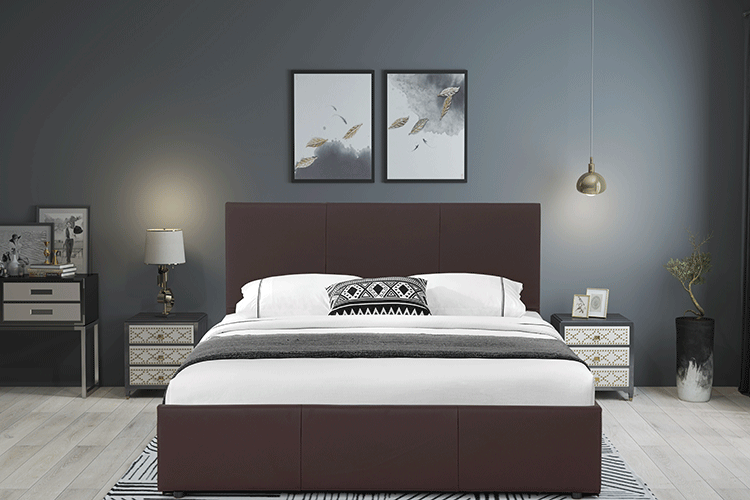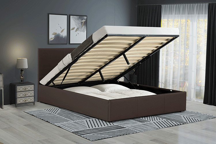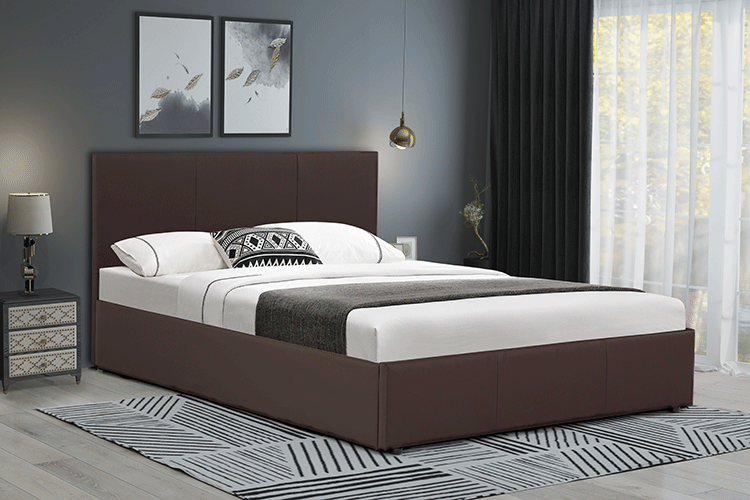 A bed with modern, clean lines, beautifully upholstered in a brown faux leather. The Cavan ottoman bed will add contemporary charm to any bedroom and is the perfect accompaniment to a wide range of bedroom styles. A sprung slatted base ensures supreme comfort and prolonged mattress life. Ottoman under bed lift up storage perfect for convenience and saving space.