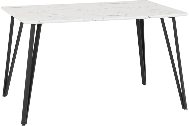Table Finish: White Marble Effect Top (MDF/3D Veneer) / Black Metal Legs