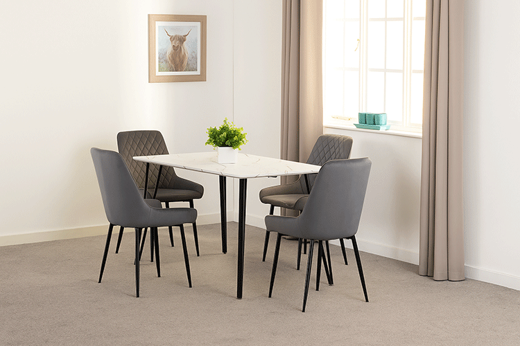 Harlow White Table and 4 Chairs - Grey |