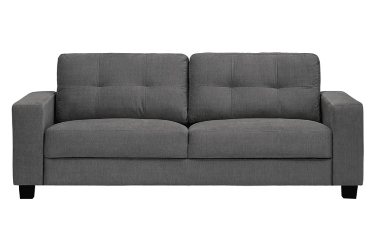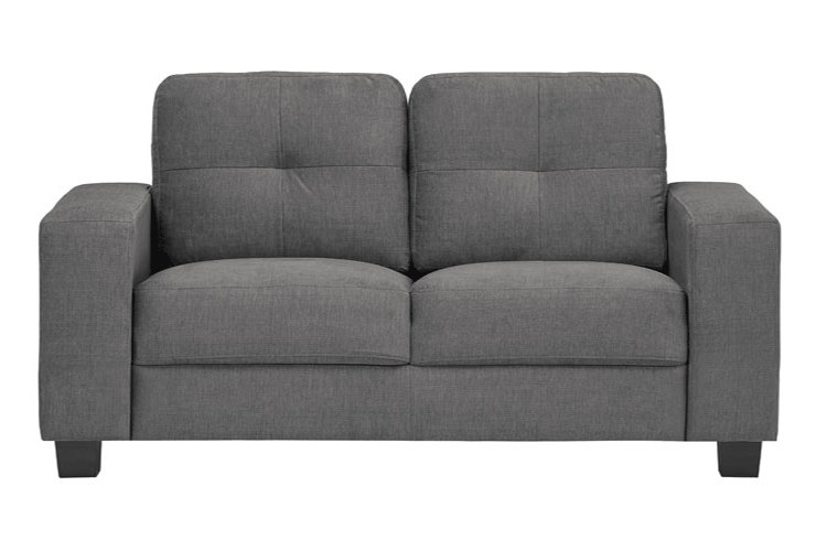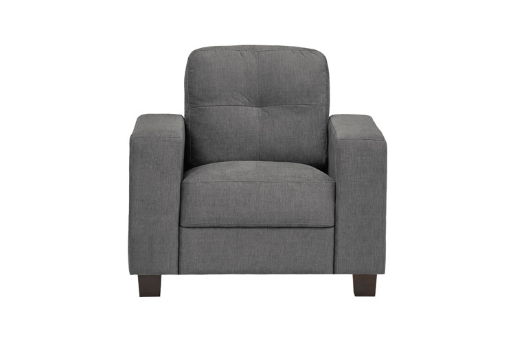 Luxurious Dacron fabric in a charcoal finish with fixed seat cushions and removable back cushions. Classic modern style.