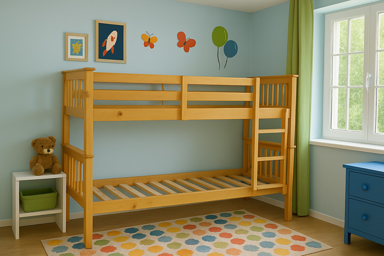 Designed with adaptability in mind, this bunk bed easily converts into two separate single bed frames — ideal for growing families or flexible room layouts. Safety rails and a secure ladder ensure peace of mind for parents, while the natural wood finish adds a cozy, welcoming touch to any space.