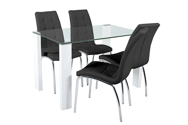 With the tables tempered clear glass top and high gloss white legs, this gives you the illusion of space. It will be a feature of any room without overpowering it. Glass thickness = 10mm.