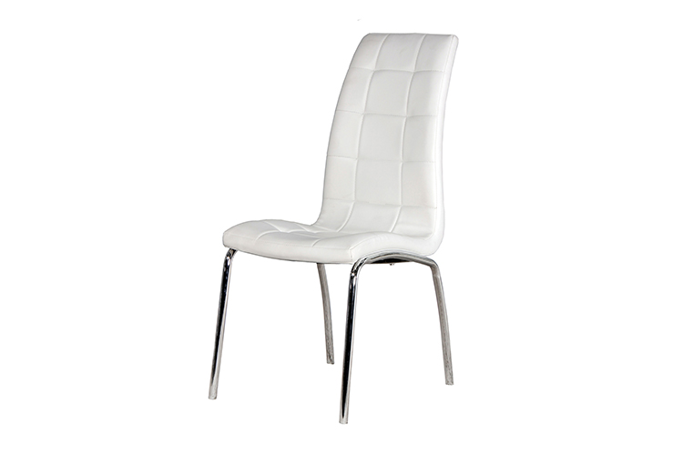 A padded stitch detailed back gives this chair both style and comfort. Added with the curve for lumber support, makes this chair extremely comfortable for a dining chair. These Chrome based chairs are finished with a black or white faux leather material.