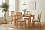 Light beech wood with a solid wooden top and four complementary chairs. Natural cream cushioned seats.